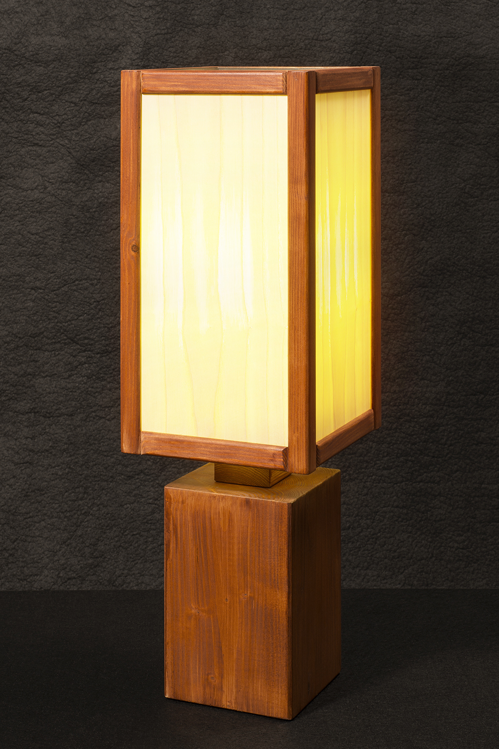 Sobremesa abeto base maciza tintado CaobaPantalla de Fresno17,4x54 cm.E-27 RoHs máx. 20 W led1.900 gr.
