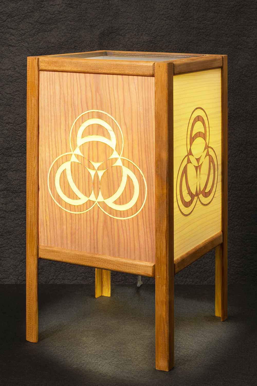 Sobremesa abeto tintado CerezoPantalla de Marquetería Arce/Cerezo24,9x45 cm.E-27 RoHs máx. 20 W led890 gr.