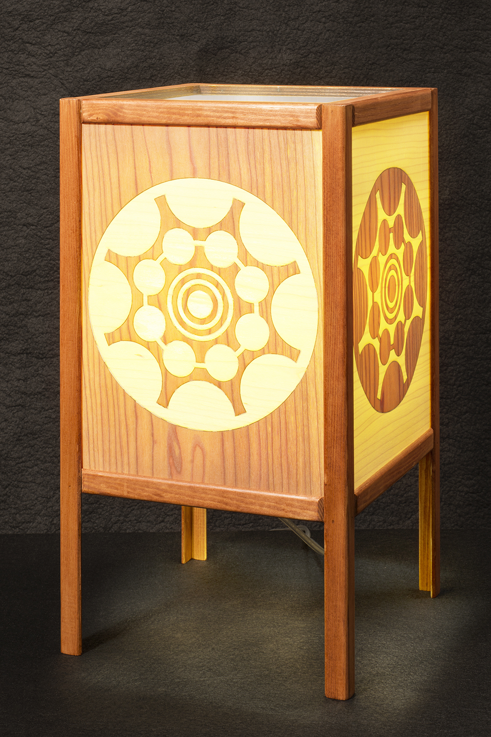 Sobremesa abeto tintado CaobaPantalla de Marquetería Arce/Cerezo24,9x45 cm.E-27 RoHs máx. 20 W led890 gr.